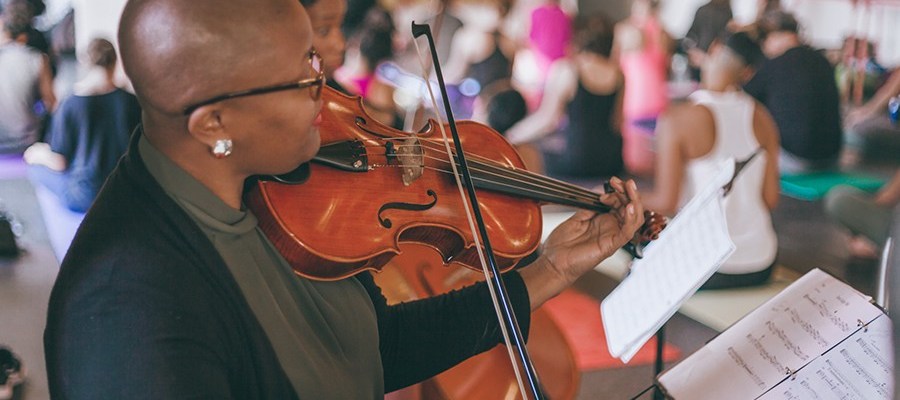 Imagine an intimate room full of young children playing decorated DIY shakers and other instruments they’d just learned to make from beans, beads, macaroni, water bottles, and rice; or an audience at a senior citizens’ center cheering on an all-Black string quartet; or a crowd that ranges across the ages in between that’s dancing, mingling, and bonding over the pulsing introduction of Juvenile’s “Back That Azz Up,” played by the same all-Black string quartet. This is the kind of classical music experience that D-Composed is creating for Black people in Chicago.